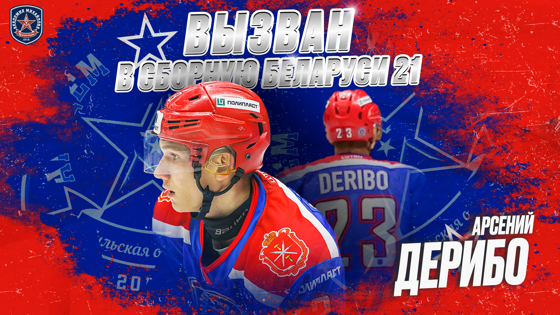 Арсений Дерибо пополнил состав «Академии Михайлова» в сезоне-2022/2023. Прошедший чемпионат стал для форварда дебютным в МХЛ. За туляков он провел 46 матчей и набрал 11 очков (5+6). Также Арсений в сезоне-2022/2023 55 раз применил силовые приёмы – это самый большой показатель в команде. В 2022 году сыграл 7 матчей за молодежную сборную Беларуси.